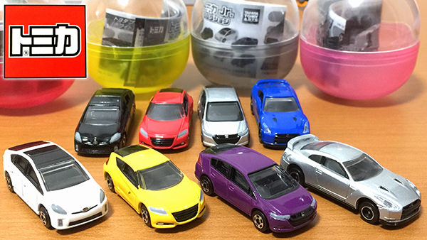 カプセル形式で販売されているトミカで、通常品よりも一回り小さいサイズになっている。