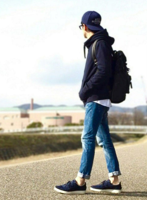 ネイビースニーカーのコーデはこう攻める